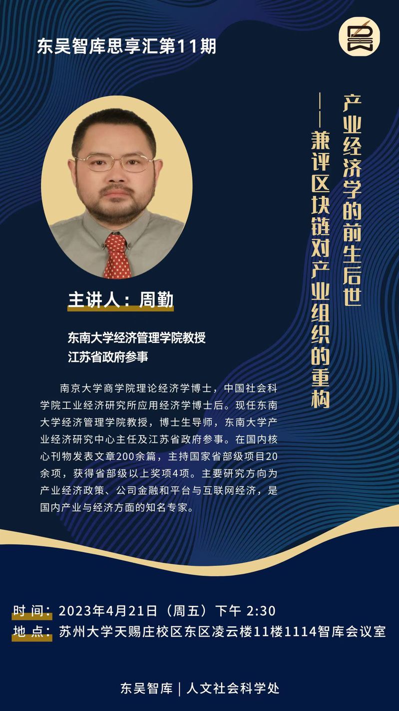 地 点:苏州大学天赐庄校区东区凌云楼11楼1114东吴智库会议室