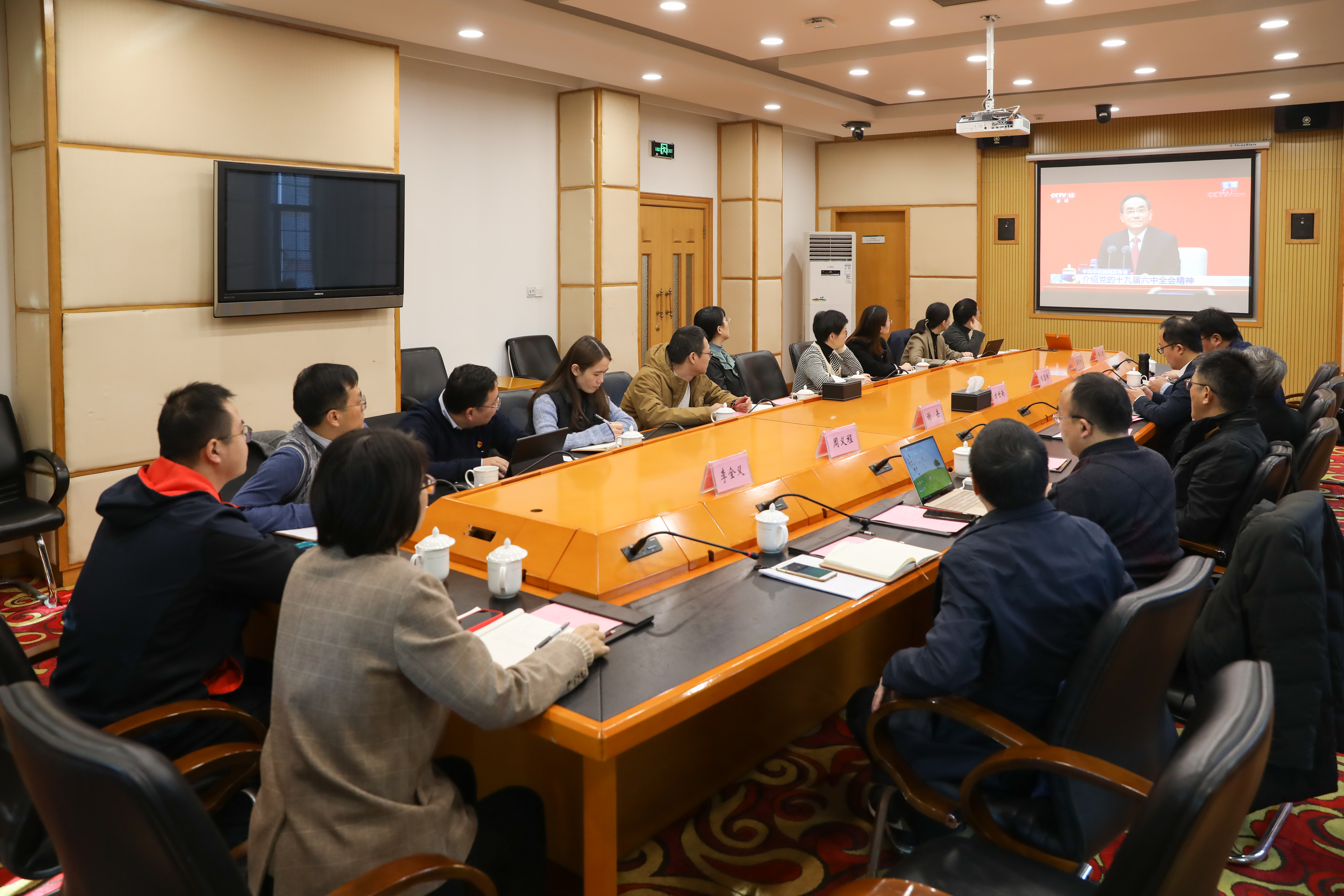 上午十时,党的十九届六中全会精神新闻发布会正式开始,支部全体党员进行了认真聆听。发布会结束后,方世南、谢岳、程雪阳、周义程、桑明旭、胡小君等专家,结合自身专业,与支部党员展开交流分享。