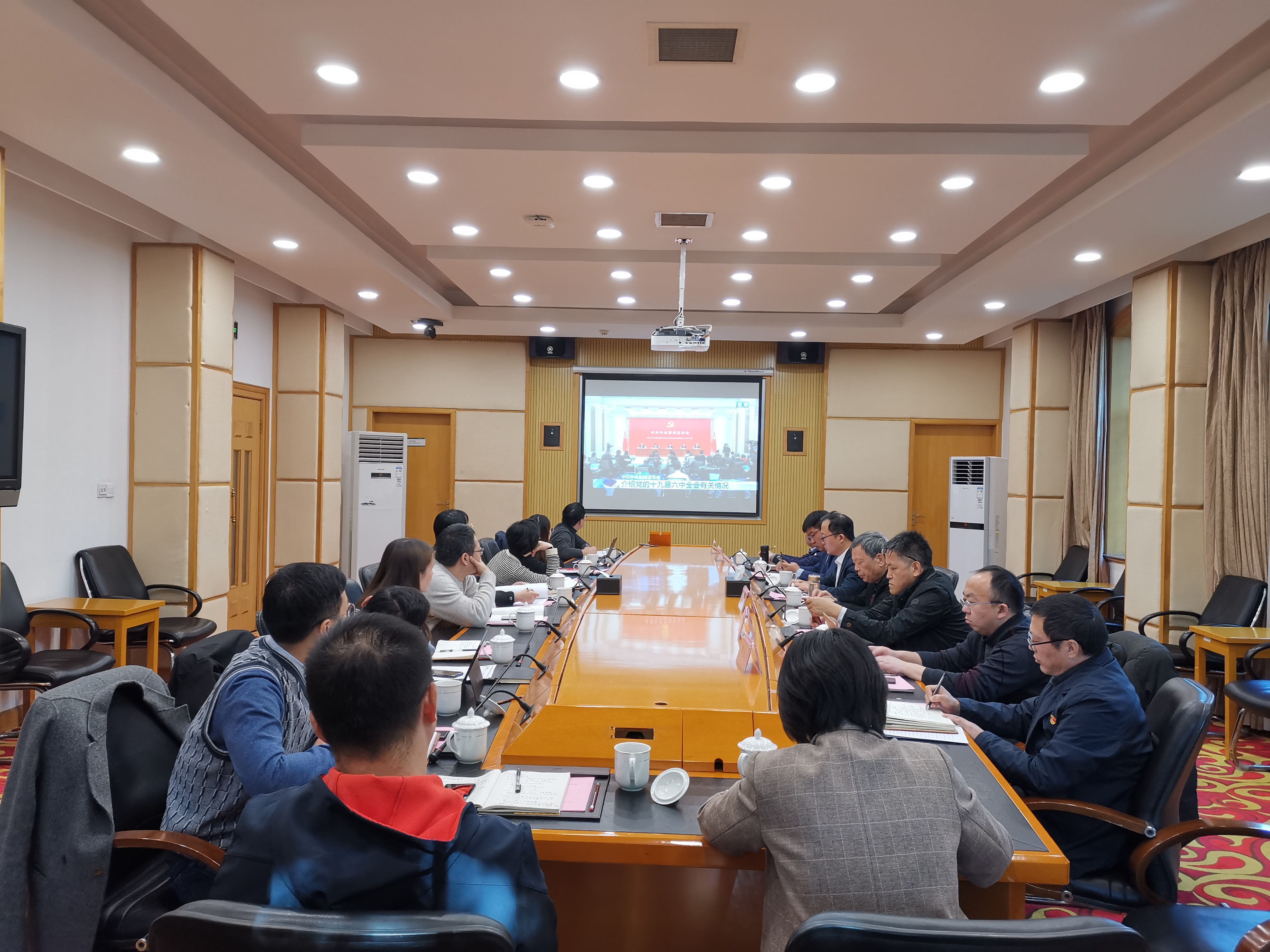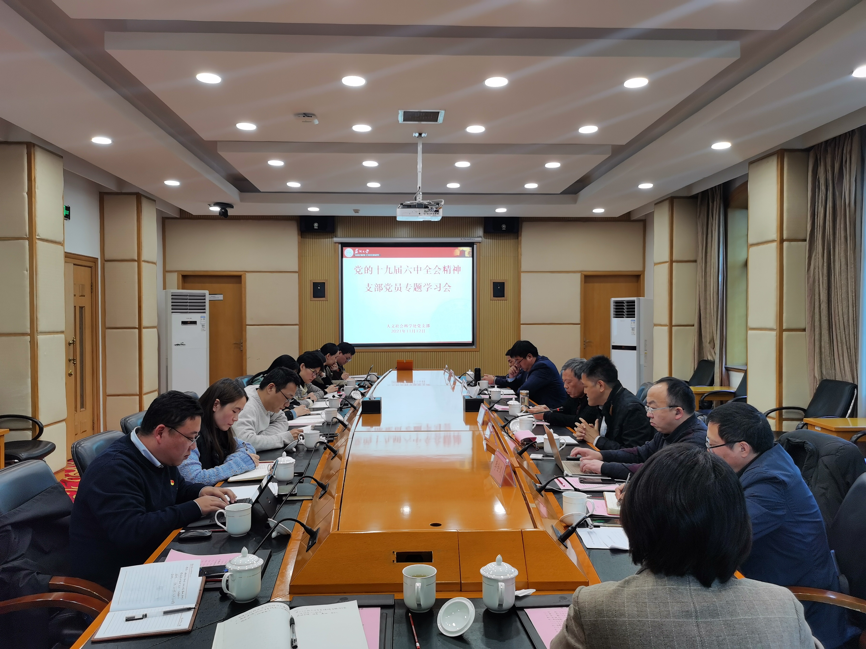 为深入学习党的十九届六中全会精神,11月12日上午,人文社会科学处党支部举行了专题学习会。会议由支部书记于毓蓝主持,邀请相关专家和机关党工委联系领导参加,支部全体在苏党员出席了此次会议。与会人员集中收看了中共中央关于党的十九届六中全会精神新闻发布会直播,相关专家进行了指导性学习发言,支部党员交流了学习体会。