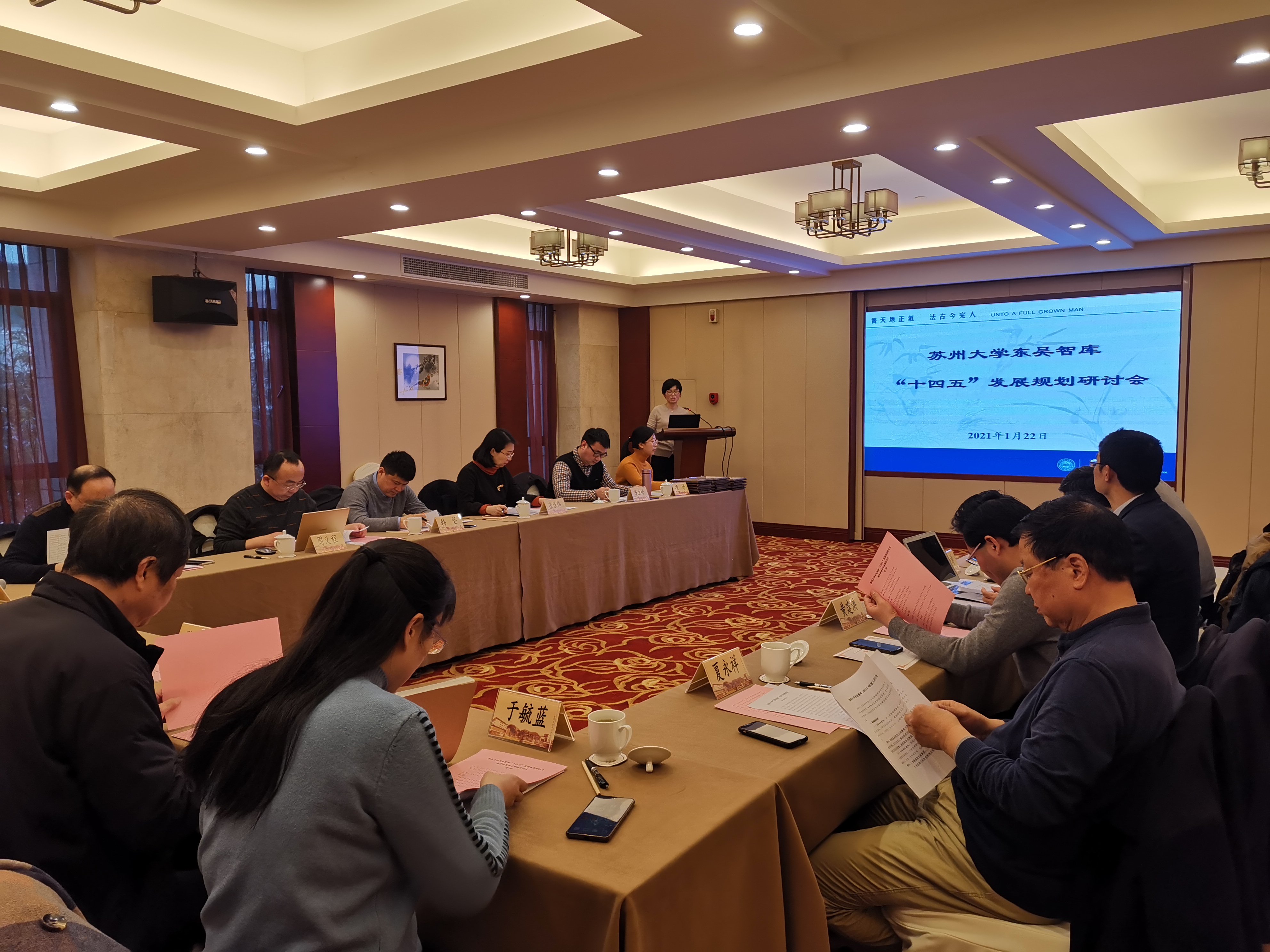东吴智库执行院长段进军教授就苏州大学东吴智库2020年建设发展情况进行汇报。他从基础建设与内部治理、咨政建言与决策咨询、理论创新与舆论引导、重大任务与品牌打造四个方面,总结了2020年智库工作取得的突出成绩,并分析了“十四五”期间智库面临的挑战。