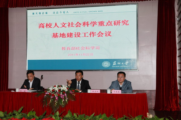 沈健详细介绍了江苏省教育发展整体情况,他指出,在今后一个时期,将迅速地把思想统一到加强高校哲学社会科学的重要部署上来,认真研究制定我省高校哲学社会科学繁荣发展的规划,不断提高哲学社会科学服务经济社会发展的能力和水平,充分发挥高校在文化创新和文化传承中的重要作用,切实加强学风建设,完善学术评价机制,大力促进高校哲学社会科学的繁荣发展,为建设文化强省、文化强国作出应有的贡献。江苏高校要倍加珍惜难得的学习机会,高度重视,周密组织,苏州大学要做好各项服务工作,确保会议圆满成功!