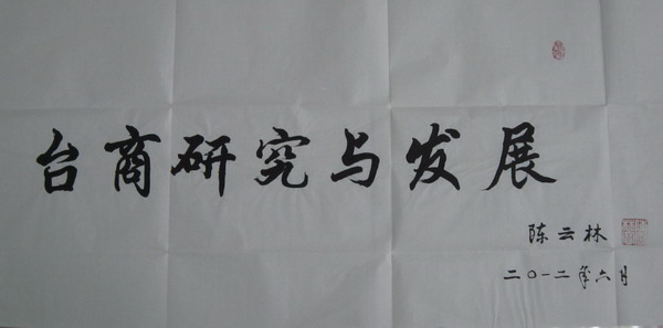2012年6月初,海峡两岸关系协会(以下简称“海协会”)会长陈云林先生为苏州大学台商投资与发展研究所《台商研究与发展》题写刊名。该刊名在即将出刊的第二期《台商研究与发展》上正式启用。