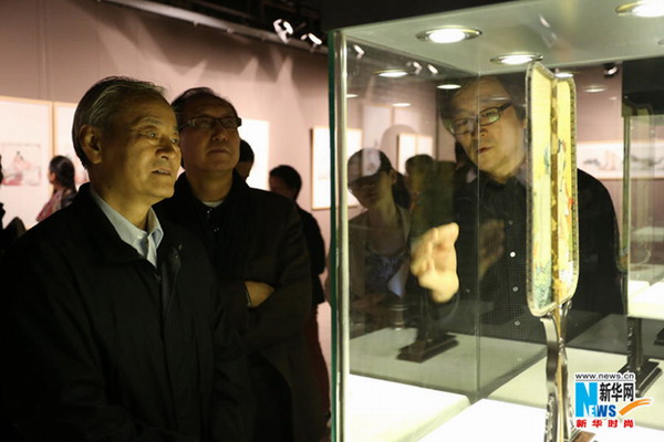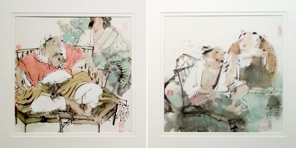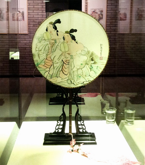 这次展览的又一个亮点是李超德教授将苏州非物质文化遗产和传统手工艺缂丝、制扇、红木、编织工艺融为一体,精心设计、绘制了十二柄书画缂丝团扇闪亮登场,将自己的文人画用缂丝团扇的形式表达出来。缂丝是苏州传统手工艺百花园中的奇葩,已经被列为国家非物质文化保护遗产名录,素有“一寸缂丝一寸金”的美誉,历来为皇家所用。这次展出的十二柄书画缂丝团扇,每一张缂丝扇面就要耗费缂丝艺人三个月的时间,可以说件件是博物馆级的收藏精品。李超德教授历时一年时间,数易其稿和试制,并邀请苏州王家第五代缂丝传人王明荣师傅和制扇高手蔡念群等艺人加盟全手工打造,将绘画、缂丝、制扇、红木制作工艺完美地结合起来,既体现了苏作工艺的高超水平和文人意趣,又展现出高品质的文化精神,是不折不扣的、不可多得的艺术品。
