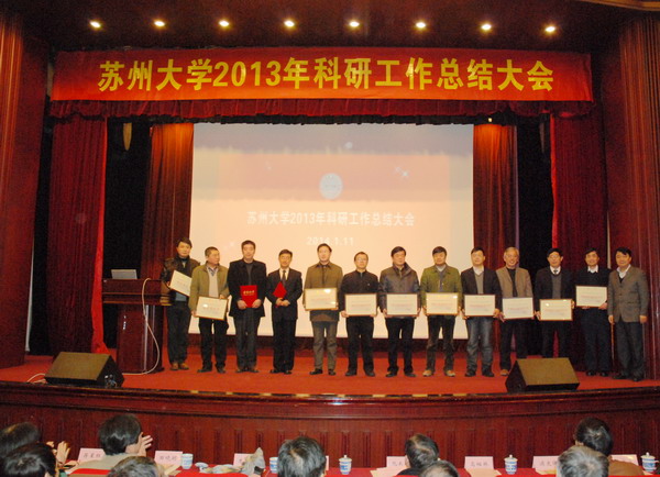 路建美作苏州大学2013年度科技产业工作总结汇报。她总结了2013年度科技产业工作取得的五大突破:我校牵头的苏州纳米科技协同创新中心进入首批国家“2011计划”;国家自然科学基金首次突破300项大关,达311项;获国家科技进步二等奖2项,各级各类科技奖108项;SCI论文发表1632篇,三大检索论文2217篇;专利申请突破1000项,达1027项。她指出,2013年度我校在提升科技创新能力、深化政产学研合作及创新科技管理体制等方面取得了显著的成绩。同时她对2013年度科技产业工作先进单位和杰出个人进行了表彰。路建美分析了科技产业工作中存在的不足,并部署了2014年度的重点工作:聚集一个目标、形成六个重点、构建一个模式、注重两个效益。她强调,2014年我校将围绕建设高水平研究型大学这一目标,加强国家级重点重大项目的设计与策划、加强各类高水平人才及团队的建设、加强科技平台的构建、加强政产学研合作、加强科技管理与服务、加强协同创新,构建“机制—项目—团队—平台—成果—效益”的良性发展模式,注重与国内一流大学横向比较科技竞争能力显著提高的效益,注重在区域经济社会发展中服务能力和水平显著提高的效益。