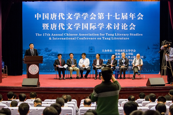 陈尚君首先对我校给予本次会议的积极支持表示感谢。他认为,唐代经济中心在江南,江南的文化代表是苏州。作为中国历史文化名城,苏州是唐代文学的重镇。苏州大学在近二十年所作明清地域文学和家族文学研究,是活生生的城市记忆,也值得唐代学者参考。在如此良好的学术环境和文化氛围里,本次年会一定可以收获丰硕成果。