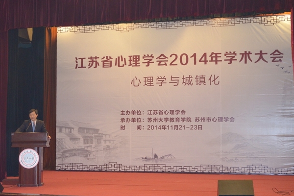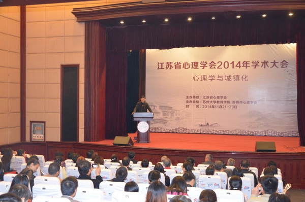 会上,江苏省心理学会理事长傅宏教授代表第十届理事会作工作报告。副理事长狄小华主持修订了《江苏省心理学会章程》,并通过大会审议。大会进行了新一届理事会的换届选举,我校副校长田晓明教授被推选为江苏省心理学会副理事长,刘电芝教授、张明教授被选为学会常务理事,吴继霞教授、吴荣先副教授、江波副教授被选为学会理事。 11月22日,江苏省心理学会2014年学术大会在校本部敬贤堂拉开帷幕。本次学术大会由江苏省心理学会主办,我校教育学院和苏州市心理学会承办,大会主题为“心理学与城镇化”。中国科学院心理研究所研究员、中国心理学会副秘书长、国际应用心理学协会秘书长韩布新教授,江苏省科学技术学会国际部李政部长,我校副校长、江苏省心理学会副理事长田晓明教授,江苏省心理学会荣誉理事长、南京师范大学郭亨杰教授,江苏省心理学会理事长、南京师范大学心理学院院长傅宏教授,江苏省心理学会副理事长、晓庄学院陶勑恒教授,江苏理工学院副校长、江苏省心理学会副理事长崔景贵教授,盐城师范学院副校长、江苏省心理学会副理事长戴秉荣教授,以及学会理事应邀出席开幕式。
