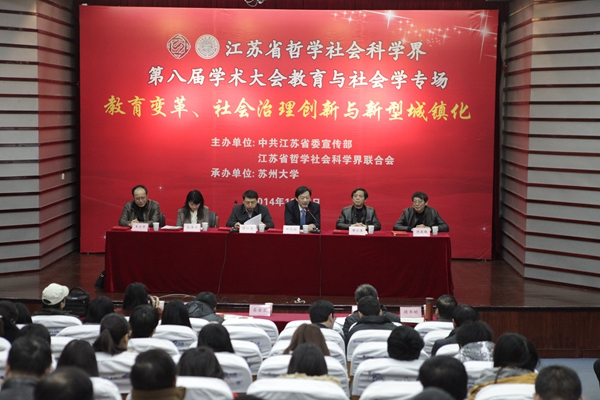 12月6日,由中共江苏省委宣传部与江苏省哲学社会科学界联合会主办、我校承办的江苏省哲学社会科学界第八届学术大会教育与社会学专场在我校召开。江苏省社科联党组副书记、副主席汪兴国,江苏省委宣传部理论处副处长张潇文,中央教育科学研究院研究员高宝立,北京师范大学公民与道德教育研究中心主任檀传宝,南京大学社会学系教授朱力,上海大学社会学系教授沈关宝等300余位专家学者和学生代表参加了会议。我校副校长田晓明出席开幕式并讲话,开幕式由人文社会科学院常务副院长母小勇主持。