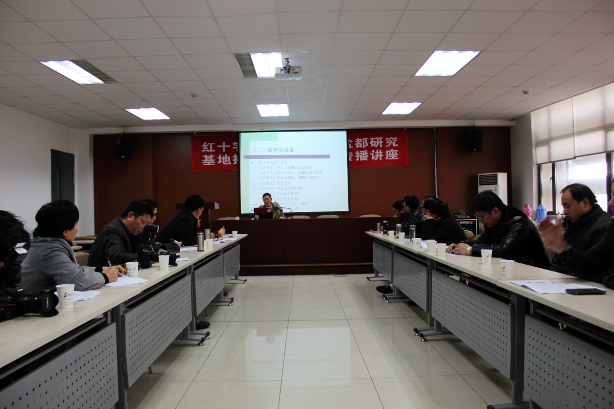 揭牌仪式之后,中国红十字运动研究领域的领军和灵魂人物、江苏红十字运动研究基地负责人、红十字运动研究中心主任池子华教授作了《构建红十字文化传播的“多媒体”》专题讲座。他结合当代媒体信息量大、传播速度快等特点,从文艺作品、文化用品、影视作品等角度分析和探讨红十字文化传播的有效途径。这次讲座对盐都区红十字会今后工作的开展富有极大的启发意义。