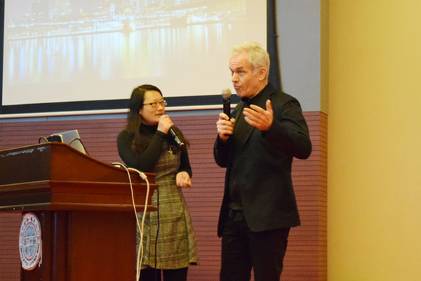 下午,2015 NEW“FORM”国际平面设计探索展(苏州站)学术论坛在炳麟图书馆学术报告厅拉开帷幕,论坛由张大鲁教授主持。克劳斯·海瑟教授围绕“设计的新形式”发表主题演讲,阐述了他对设计的独到认识与见解,并和在场观众分享了许多个人的设计案例。李中扬教授从“创意角度”出发作了学术报告,提出了一些关于设计创意的新思考,同时也与大家进一步探讨了设计的新标准与新价值。