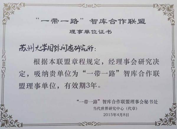 根据中央统一部署,由中联部负责牵头组建“一带一路”智库合作联盟(简称“智库联盟”)。4月8日,中联部“当代世界研究中心”在北京万寿宾馆举行智库联盟理事会成立会议,围绕“智库联盟”如何发展、各研究机构就“一带一路”所开展的工作、“一带一路”推动初期应注意的问题等议题进行讨论。 本次会议成立了“一带一路”智库合作联盟理事会,讨论通过了《“一带一路”智库合作联盟章程》,并发表了《“一带一路”智库合作联盟成立宣言》。会议共邀请全国50余家智库和高校研究机构作为理事单位。鉴于我校政治与公共管理学院国际问题研究所对“一带一路”的研究具有较高的理论水平和政策水平,研究所被特邀为理事会理事单位,研究所所长钮菊生教授被特邀为理事,并应邀出席理事会成立大会。