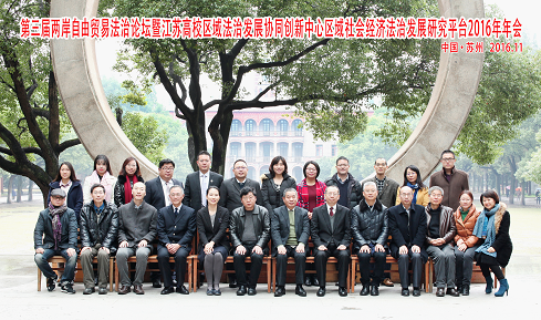 11月26日-27日,第三届两岸自由贸易法治论坛暨江苏高校区域法治发展协同创新中心区域社会经济法治发展研究平台2016年年会在我校王健法学院举行。本次会议分为四个单元,共有来自台湾东吴大学、上海财经大学、上海对外经贸大学、上海外国语大学、东南大学、南京师范大学、南京财经大学、江苏省社科院、扬州大学、四川大学、四川理工学院、中国国际贸易促进委员会苏州市委员会、苏州大学等学术单位的40余名专家学者参会。