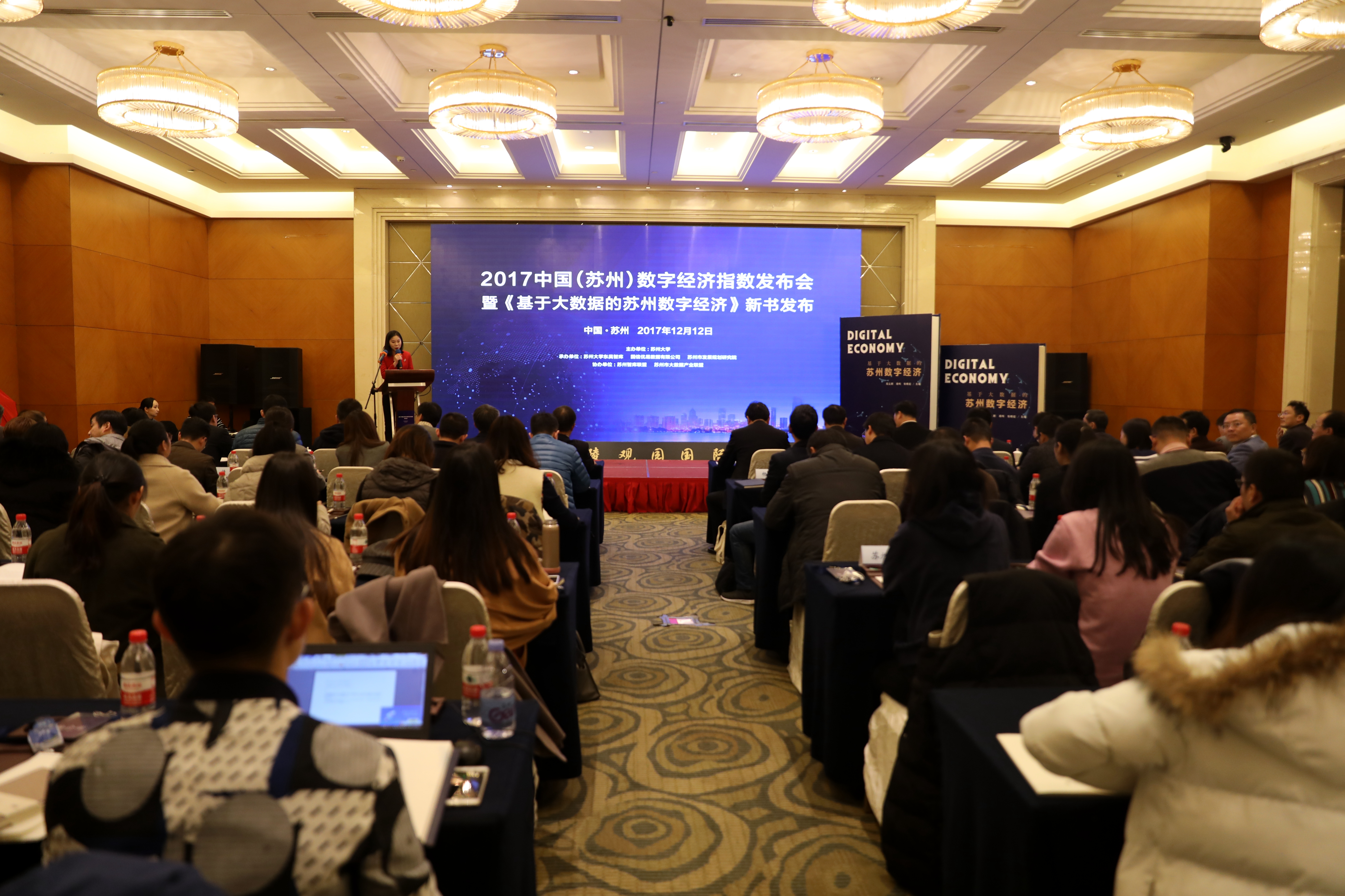 12月12日,2017中国(苏州)数字经济指数发布会暨《基于大数据的苏州数字经济》新书发布会在苏州举行。苏州市副市长曹后灵,我校党委常委、副校长张晓宏,苏州市发展和改革委员会副主任张伟,优易数据研究院执行院长段立新等领导和嘉宾出席发布会。