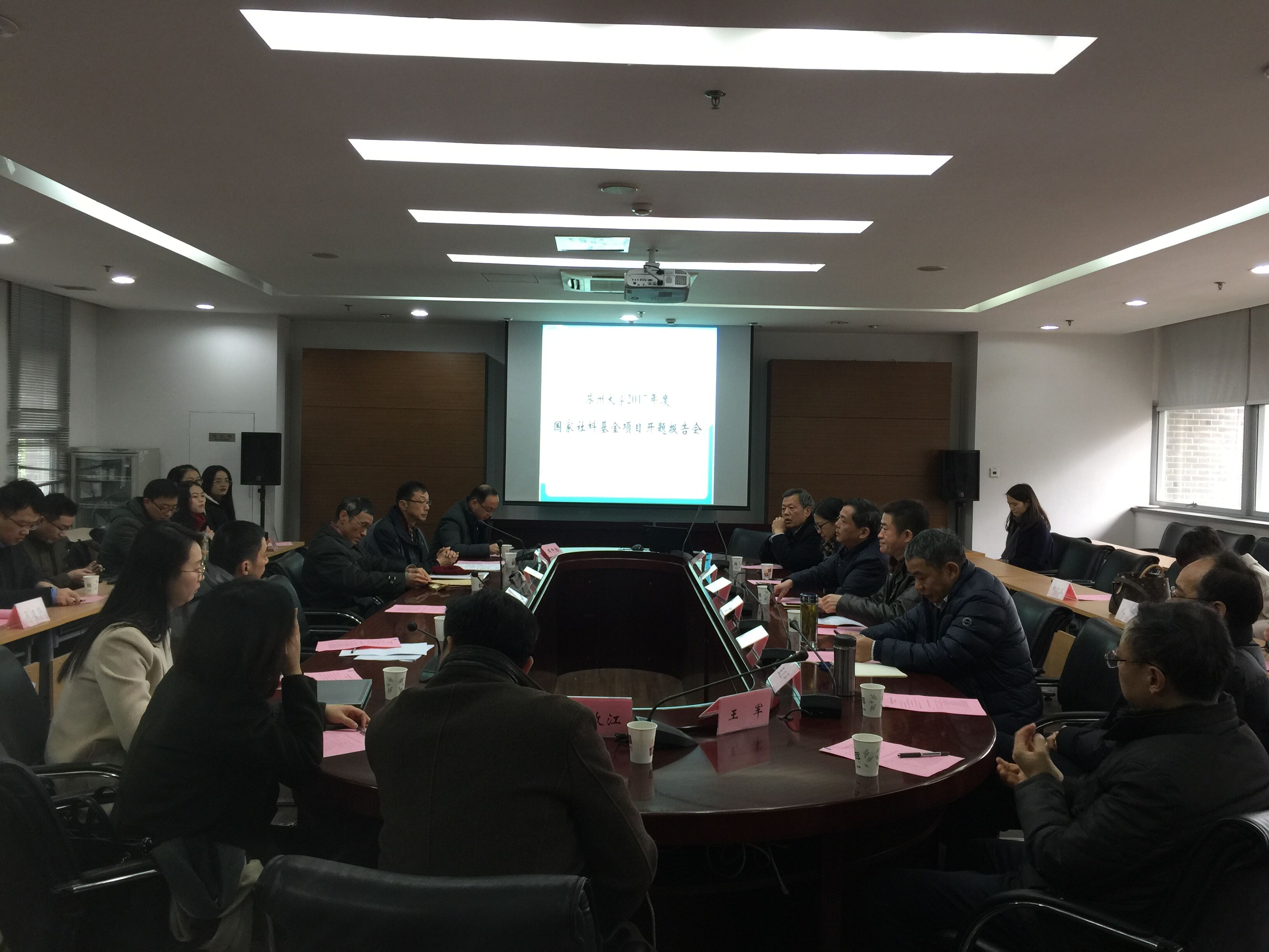 为保证我校国家社科基金项目顺利开展,推出高水平研究成果,近日,我校举行了2017年国家社科基金项目开题报告会。江苏省哲学社会科学规划办公室副主任汪桥红、副主任周丽,我校人文社会科学院常务副院长母小勇、副院长林萍,2017年度国家社科基金面上项目承担者出席了会议。会议特别邀请了我校胡玉鸿教授、方世南教授、王卫平教授、王军教授作为点评专家对项目研究工作进行指导。会议由母小勇主持。