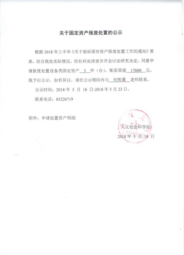 关于我处固定资产报废处置的公示