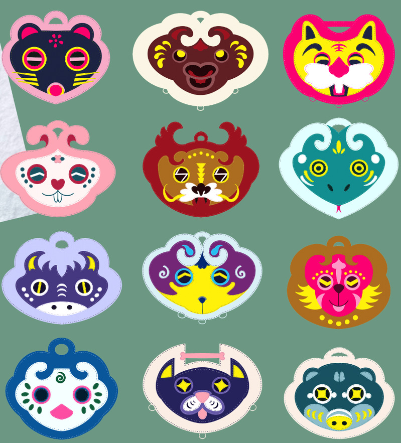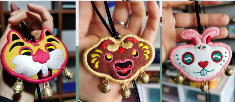 十二生肖系列手绣香囊:将金锁与十二生肖形象结合,传达出双倍的祝福。